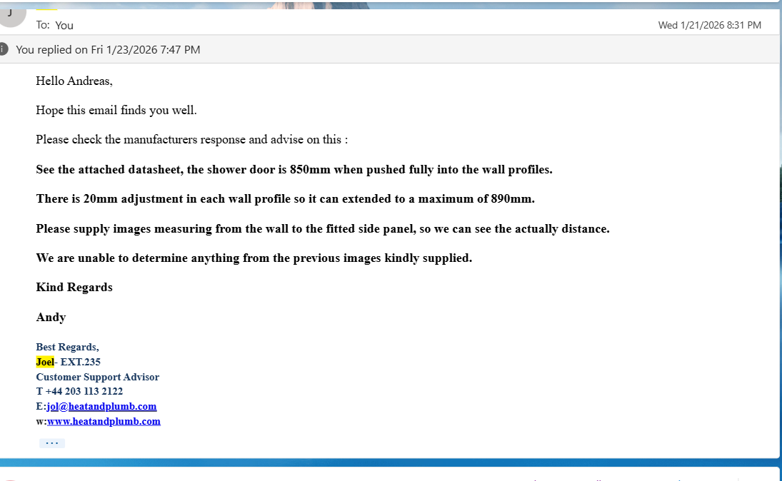 ❗ Case Study: Shower Enclosure Sold as “900mm” but Unable to Fit a 900mm Opening Against – heatandplumb.com