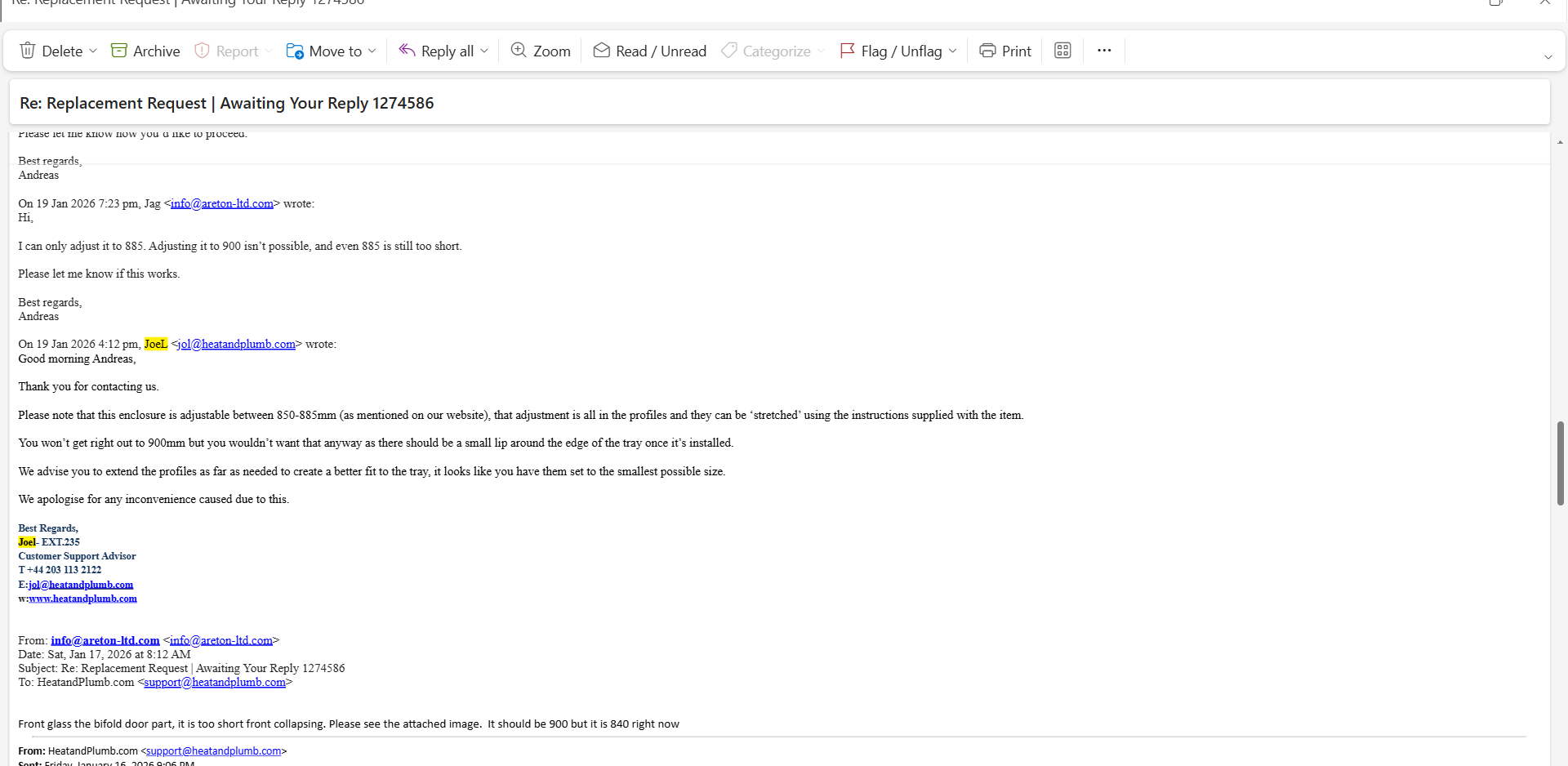 This article documents the measurements, correspondence, and delays encountered when the product was found to be physically incapable of fitting a 900mm opening.