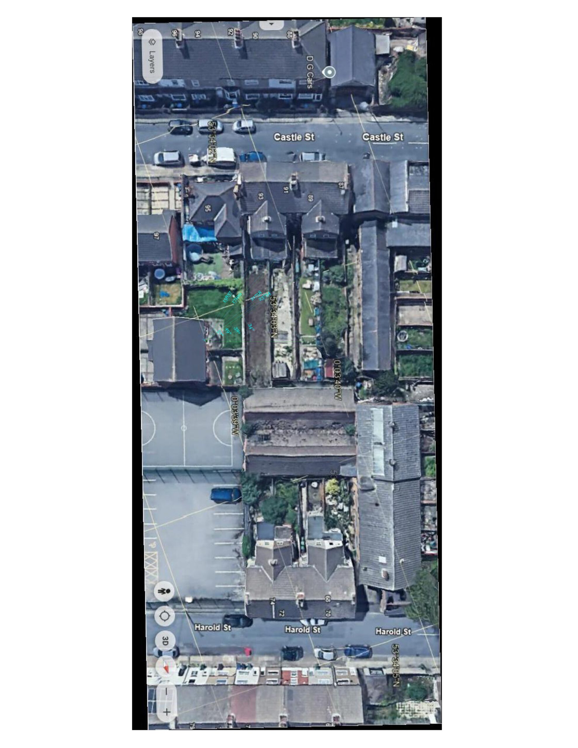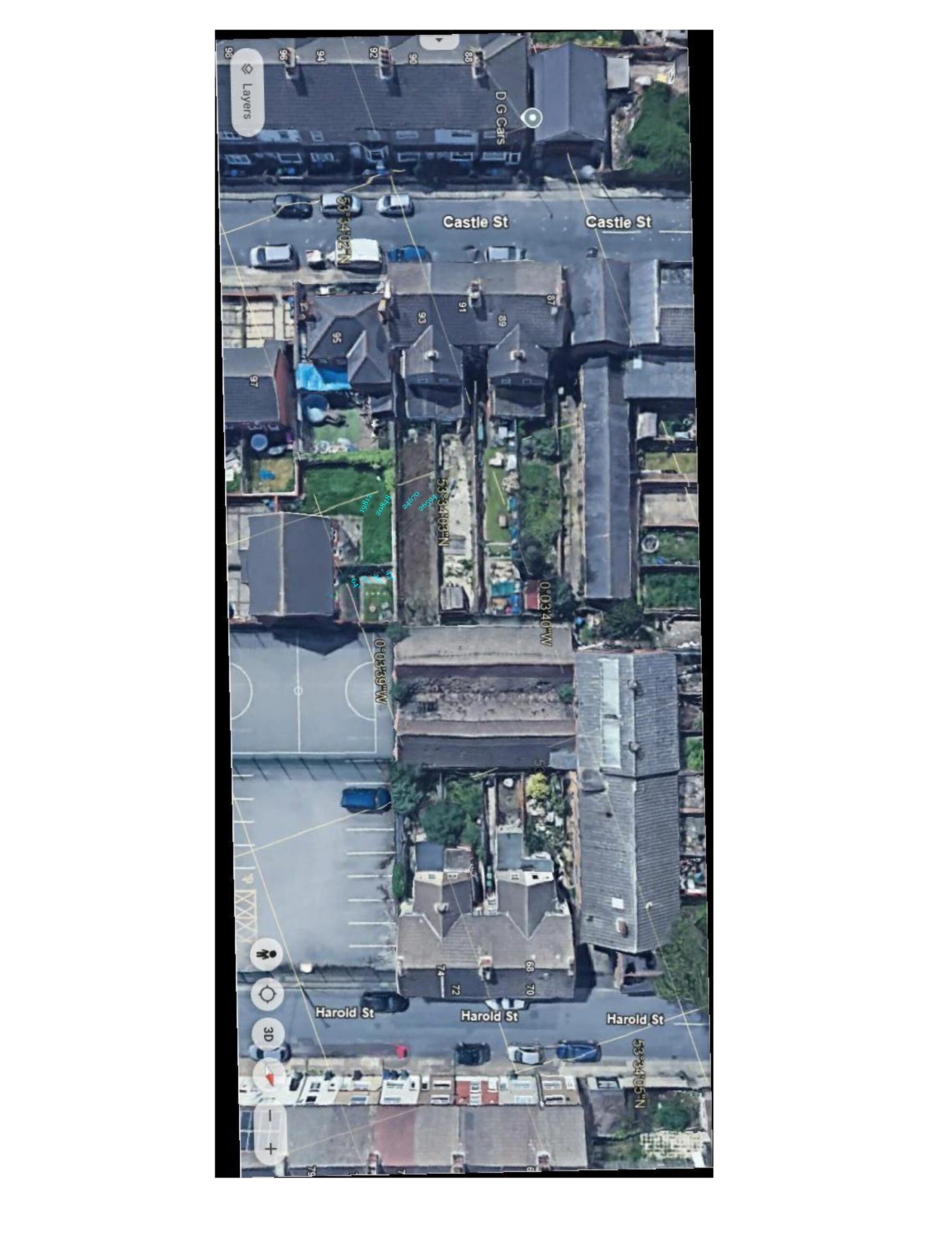 The only area of concern would be the properties facing Harold Street. Therefore, the verification is carried out on these properties only. If the 45 degree rule is satisfied on all the windows of the properties facing Harold Street, then all the surrounding properties will not be affected by any overshadowing because they are much further away.